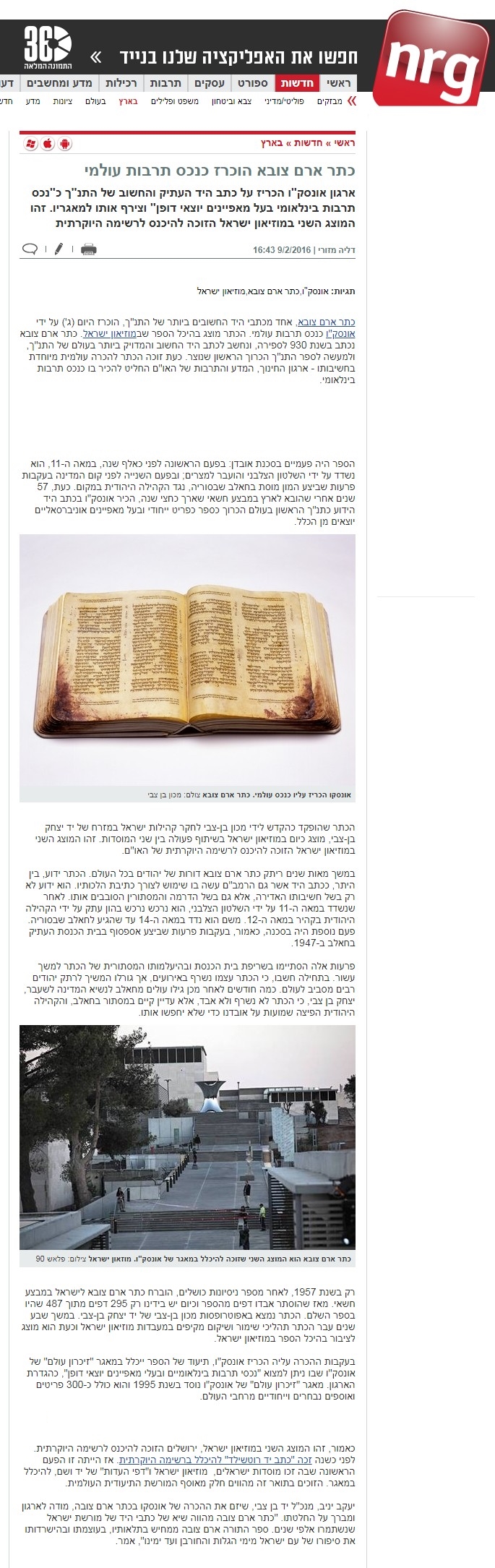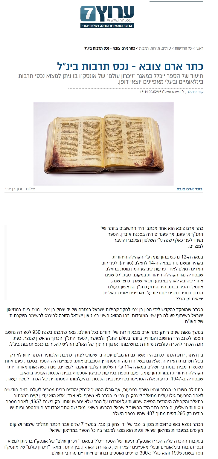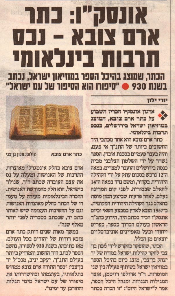 תמונות וקטעי עיתונים – כתר ארם צובה