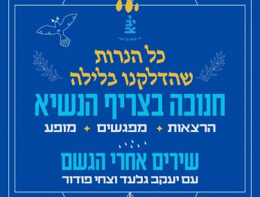 בחנוכה, בימים א-ד’ מוזמנים עם כל המשפחה לסיורים ופעילויות בצריף הנשיא: תיאטרון צלליות באנימציית Stopmotion, סיפורים, שירים ומשחקים שילדים וילדות אוהבים. מחיר: 20 ש”ח.
